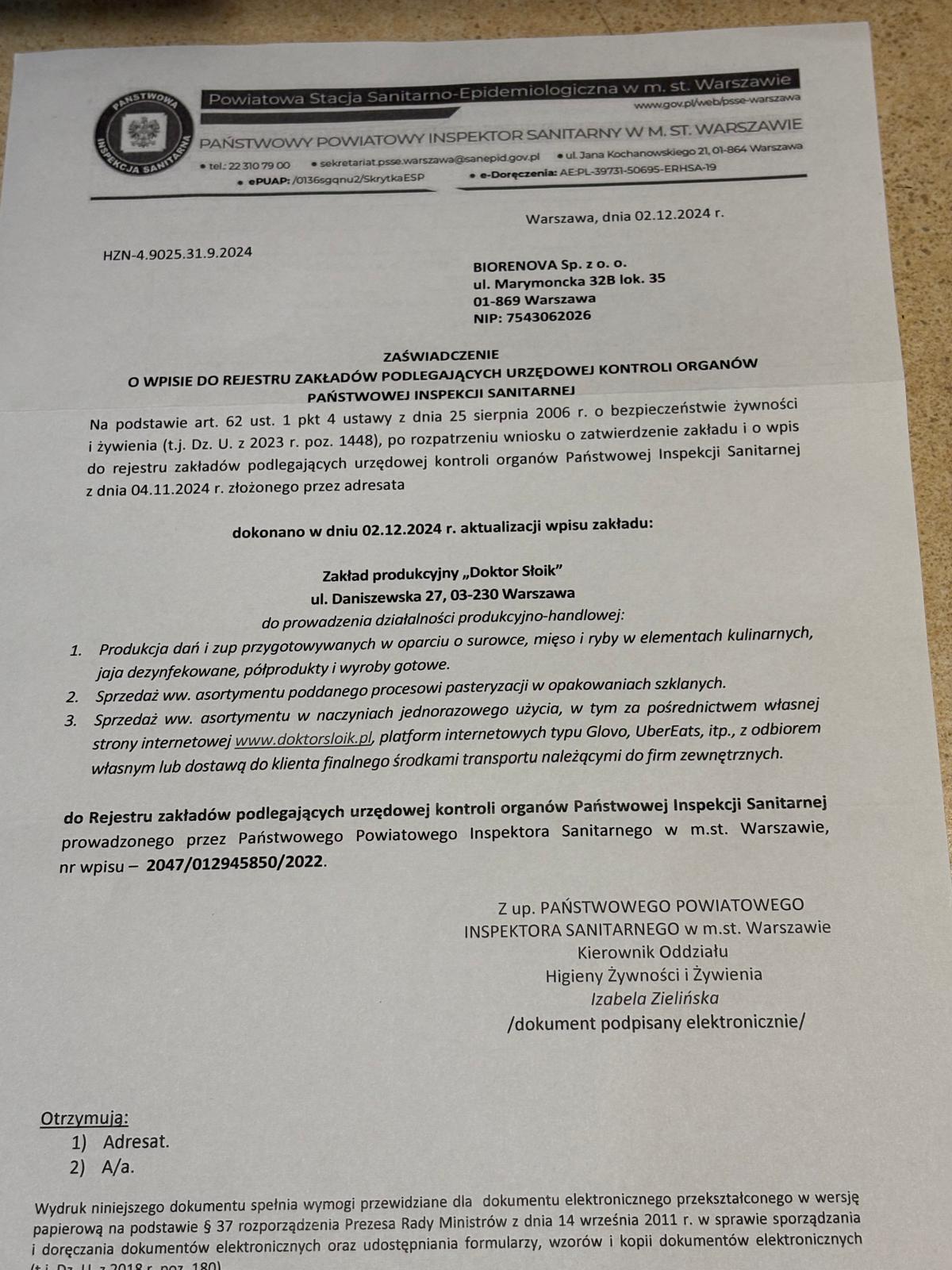 • Zezwolenia sanepidu